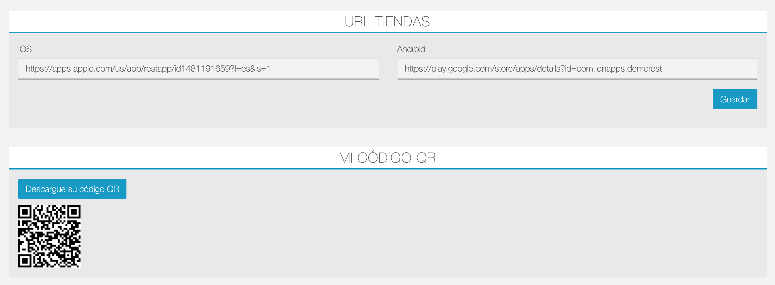 Puedes generar el código QR desde cualquier web. Pero también, si lo deseas, puedes encontrar los links de descarga y el código QR en el panel backoffice.