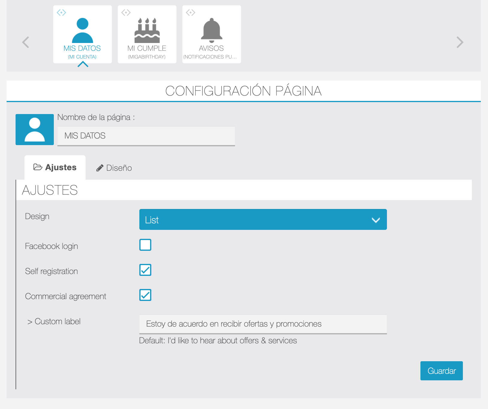 - Acuerdo comercial: El usuario tenga que aceptar que recibirá ofertas y promociones (o cualquier información que desees) desde la app. Este texto es editable, por lo que puedes personalizar el mensaje.